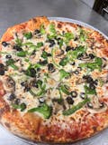 Peppers, onions, mushrooms, olives, broccoli.